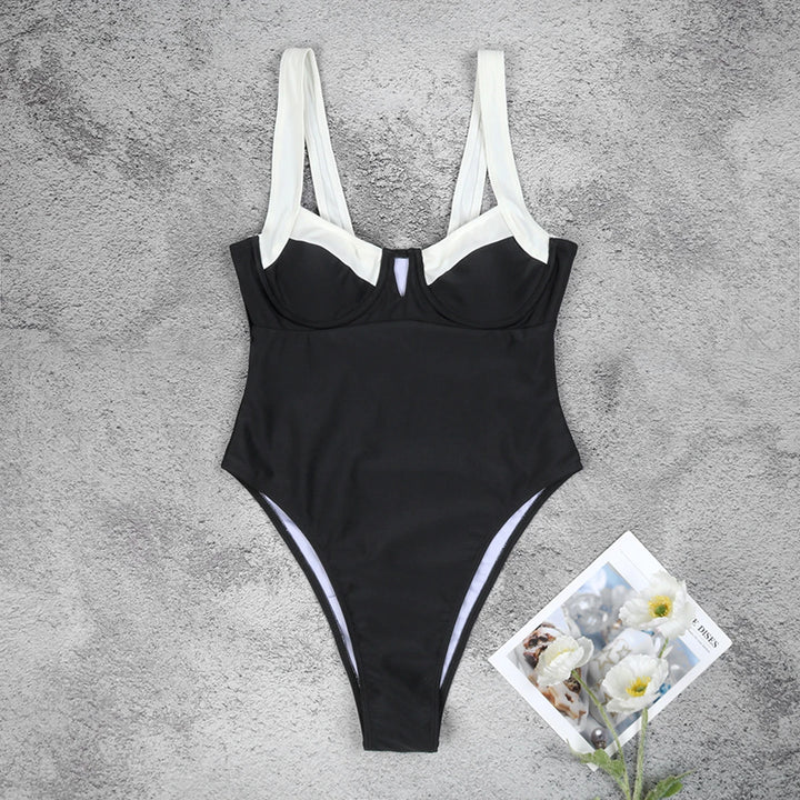 2024 Solid Black & White One-Piece Swimsuit