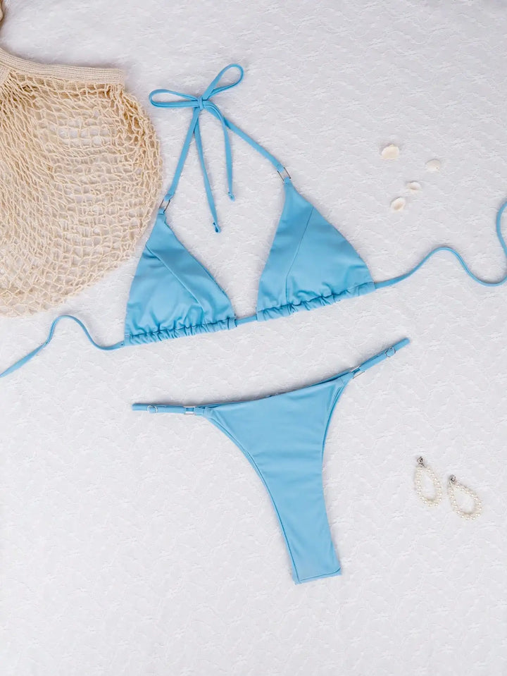 2025 Sexy Blue Triangle Bikini β High Cut Thong with Adjustable Straps