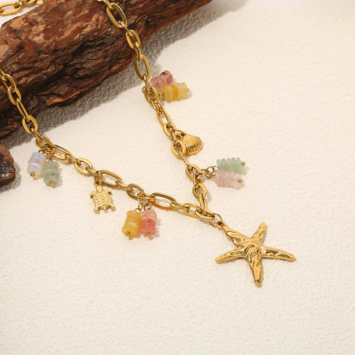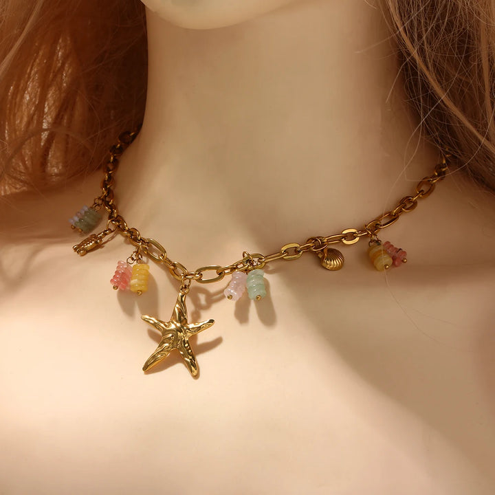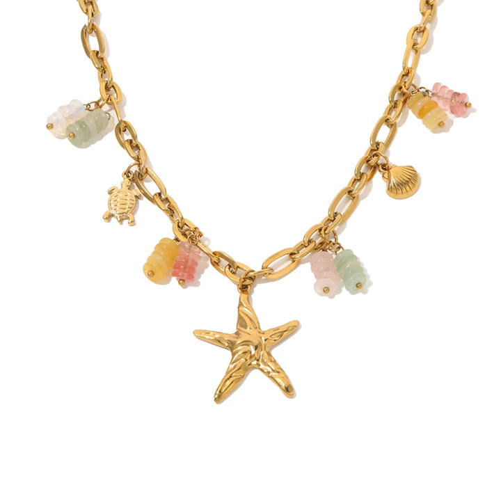 Bring seaside elegance to your everyday look with this simple ocean-style starfish pendant necklace. Crafted from durable stainless steel, it’s a lightweight and charming accessory for beach days and beyond.