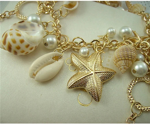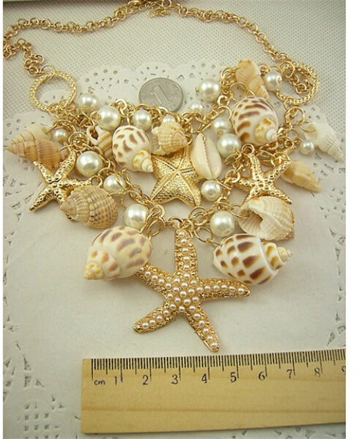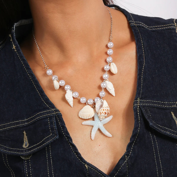 Capture the essence of the sea with this stunning layered choker necklace featuring starfish, shell, and pearl details. Designed for beach lovers and summer fashionistas, this piece adds a playful yet elegant touch to your coastal look.