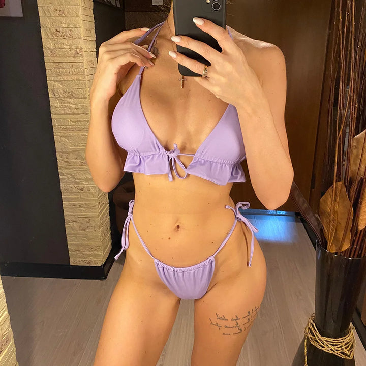 π Overview: Get beach-ready with this elegant 3-piece bikini set featuring a halter ruffled bikini, matching bottoms, and a stylish sheer sarong cover-up. Designed for the fashion-forward woman who wants comfort,...