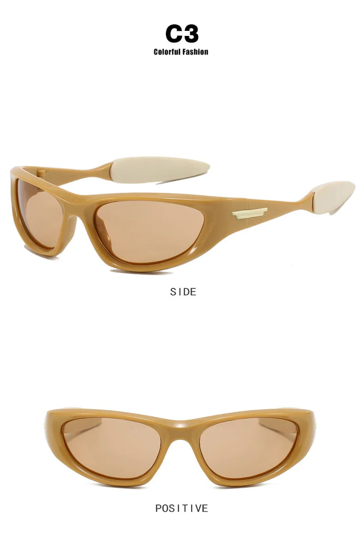 Make a bold statement with these Y2K-inspired cat eye sunglasses. Designed with a punk twist and a retro silhouette, they’re the perfect accessory for edgy summer looks.