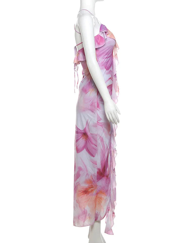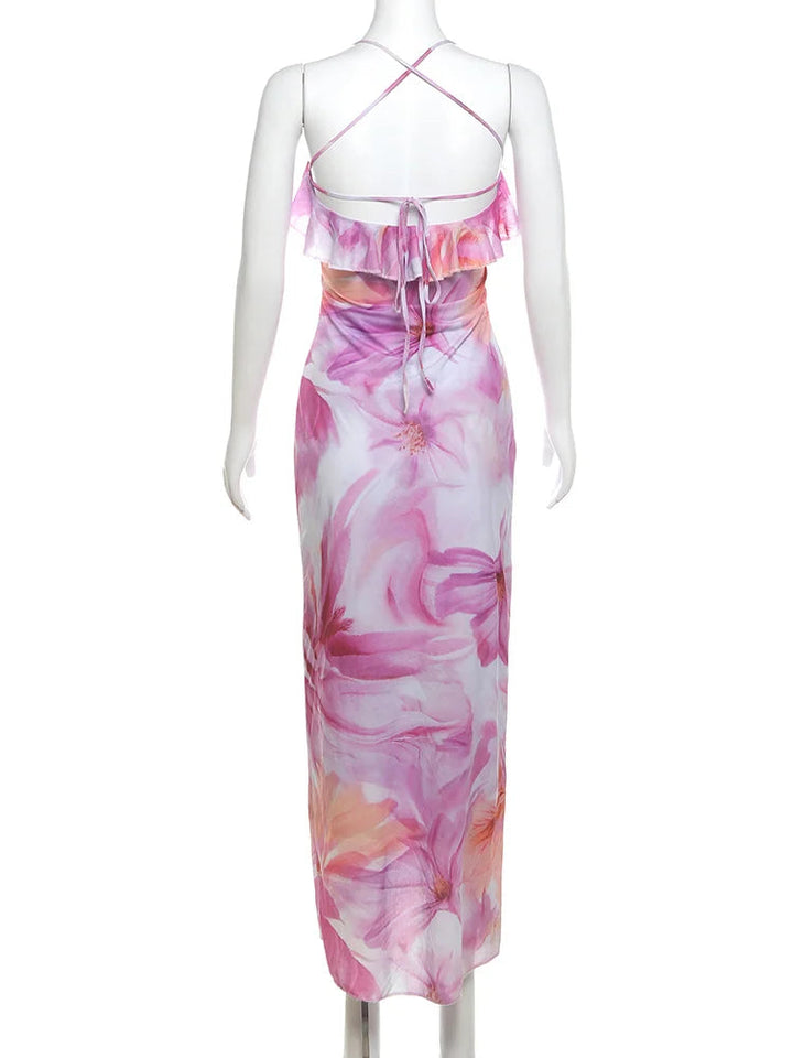 Turn heads this summer with this bold and stylish strapless floral dress. Featuring a unique patchwork design with tassels, a high slit, and a flattering backless bandage fit – it’s made for confident women who love to stand out.